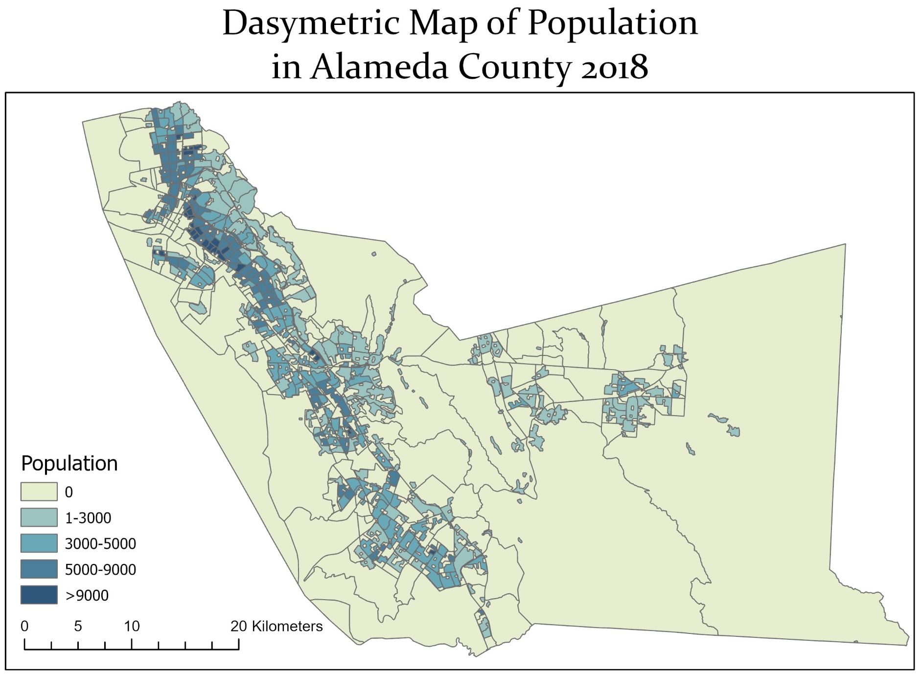 Vectors are lightweight shapefiles ideal for analyzing known information about a study area. Examples include survey points or census blocks. Knowing how to handle vector data well is one of the basic skills any GIS analyst must have. Pictured above is a Dasymetric map of Alameda County, California. Dasymetric maps are made by taking multiple sources of data and using one or more to refine another. Here I have taken the populations of each of the census blocks and restricted their display to just where the landcover is classed residential. In this way we can avoid some of the generalizations and bias present in raw census data.